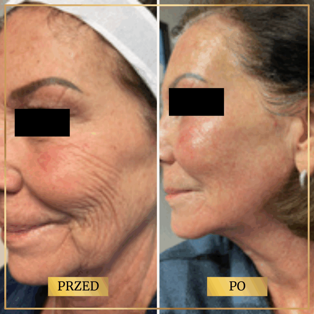 Efekty są długotrwałe – skóra stopniowo się przebudowuje i produkuje nowy kolagen przez kilka miesięcy po zakończonej serii.